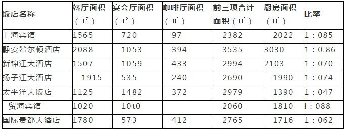 表2 為幾家著名飯店餐廳、宴會廳、咖啡廳與蜜桃视频黄色网麵積統計