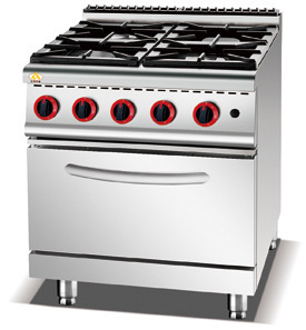 西式燃氣連焗爐的構造:爐身由優質不鏽鋼製成,上部為鑄鐵爐頭或黃銅爐頭明火爐,下部為暗火烤箱,用高密度玻璃纖維包住如爐體內膛,用高密度玻璃纖維包住爐體內膛,能長時間保溫。