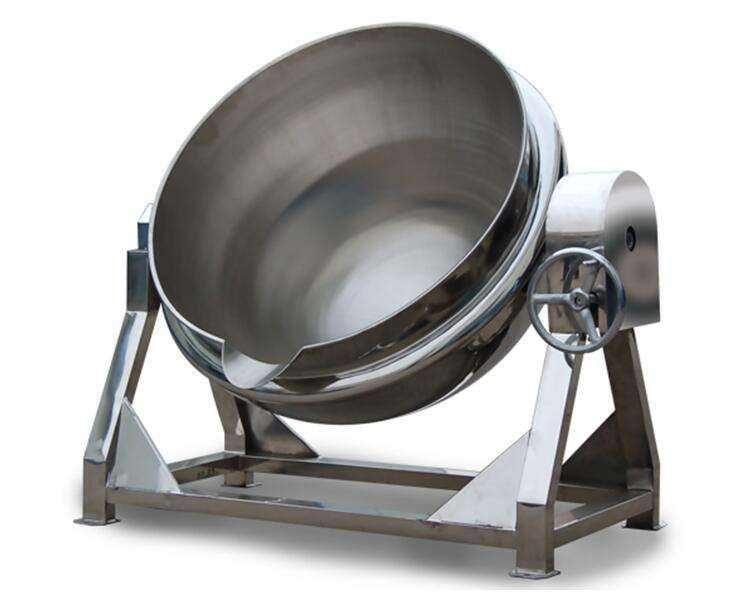夾層鍋,又稱為蒸汽湯國,它采用裝汽為熱源,由內外雙層球形鍋體組成,內外夾層中間通入蒸汽加熱,蒸汽溫度為150-180度,壓力小於0.2MPa,傳熱效率高,不會糊鍋。常用的夾層鍋為可傾式,鍋身可覆,以方便裝卸物料,傾鍋裝置通過手輪帶動齒輪傳動,使鍋體傾斜出料。翻轉動作有電動控製的,整個操作過程安全且省力。夾層鍋適用於酒店、賓館、食堂及快餐行業,常用於布郎礎湯的熬製、肉類熱湯的預煮、配製調味液以及熬煮一些粥和麵食類食品。