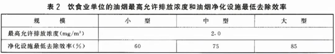在我國對油煙排放有著嚴格的限製,國標《飲食業油煙排放標準(GB18483-2001)》規定,油煙排放濃度不得超過2.0mg/m3,相應淨化係統的淨化效率大型係統不得低於85%,中型係統不得低於75%,小型係統不得低於60%。