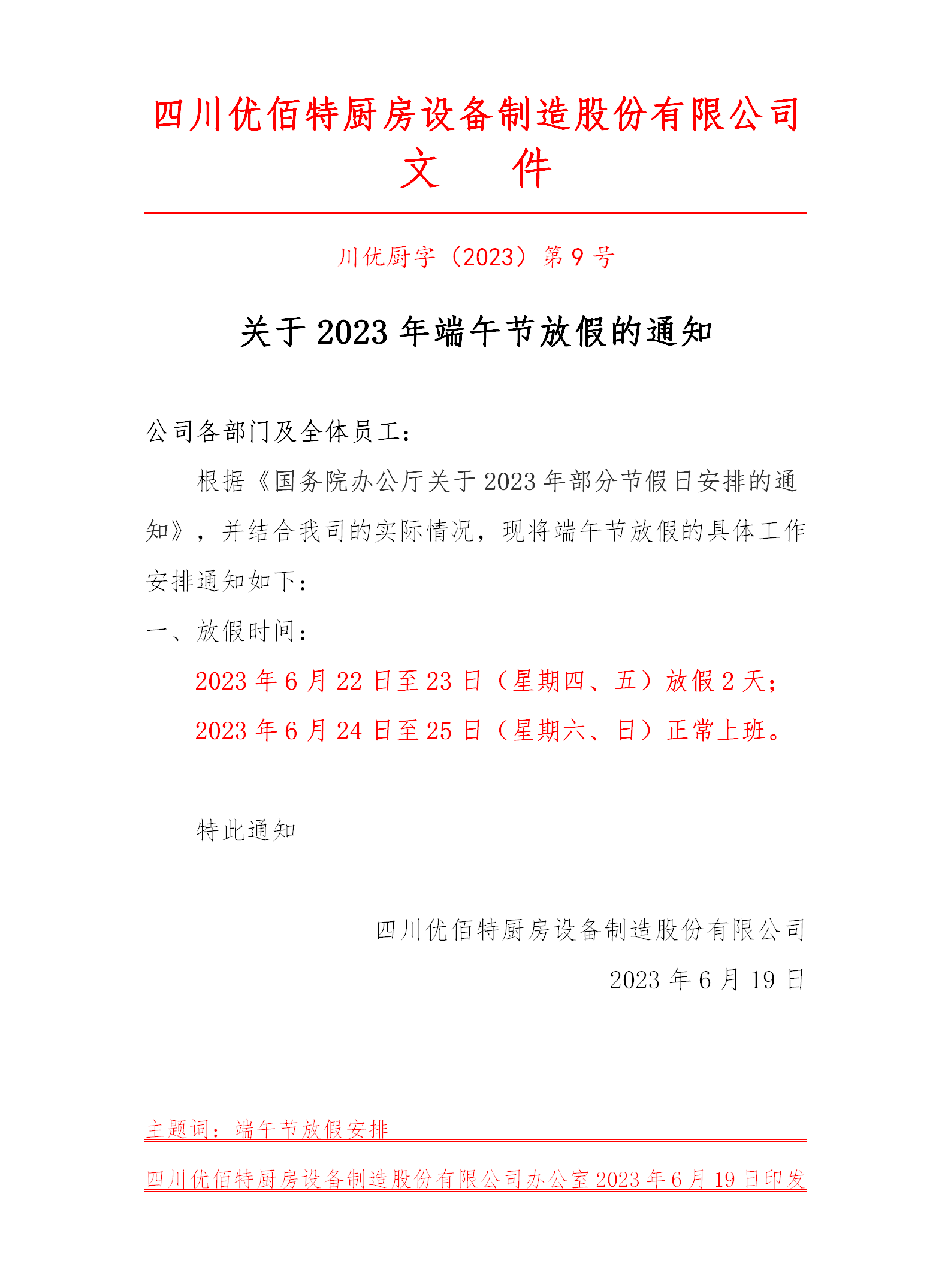 端午節放假通知