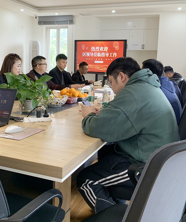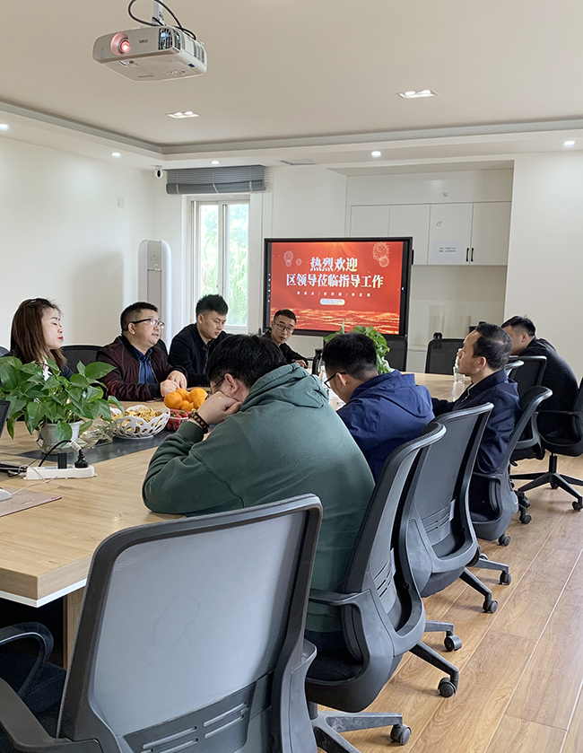 在會談中,袁總向各位來訪的領導介紹了公司的主要業務以及經營情況。區領導在聽取了袁總的介紹後,對公司的工作給與了肯定,並且對相關工作進行了指導。
