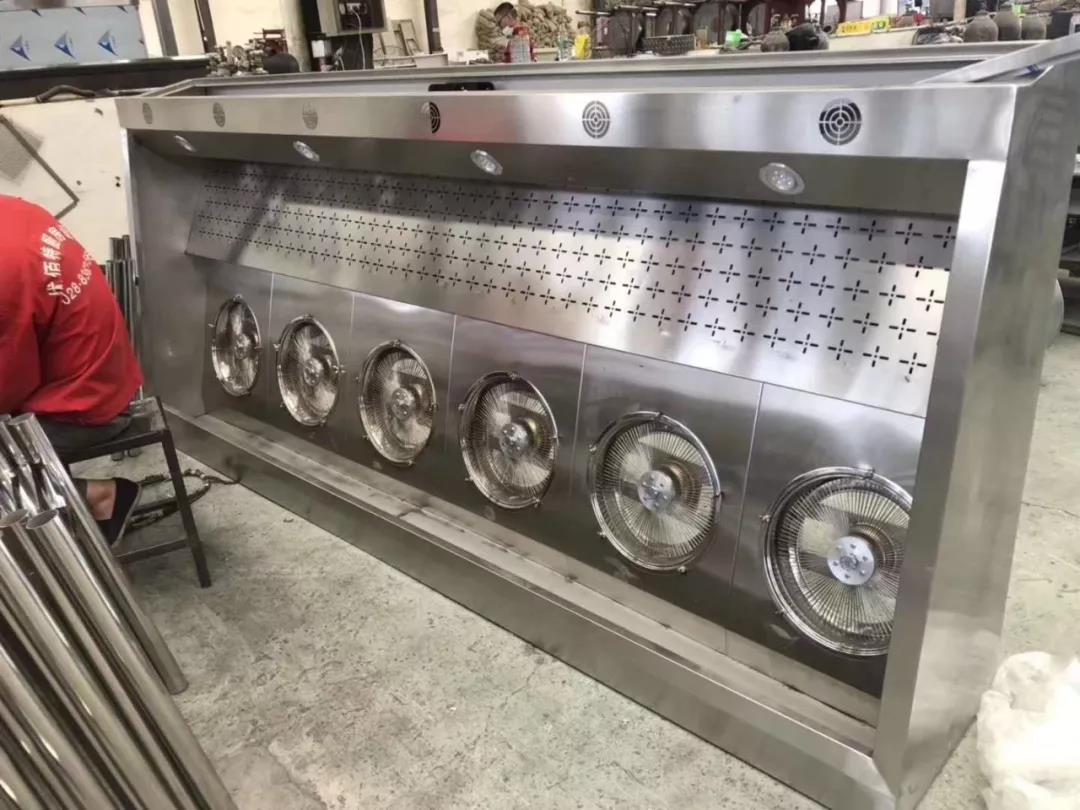 (此圖為工人加工一體煙罩圖,雖然在加班,但工人們還是兢兢業業的做好每到工序)