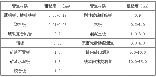 不同材質的管道內壁的絕對粗糙度係數見下表、